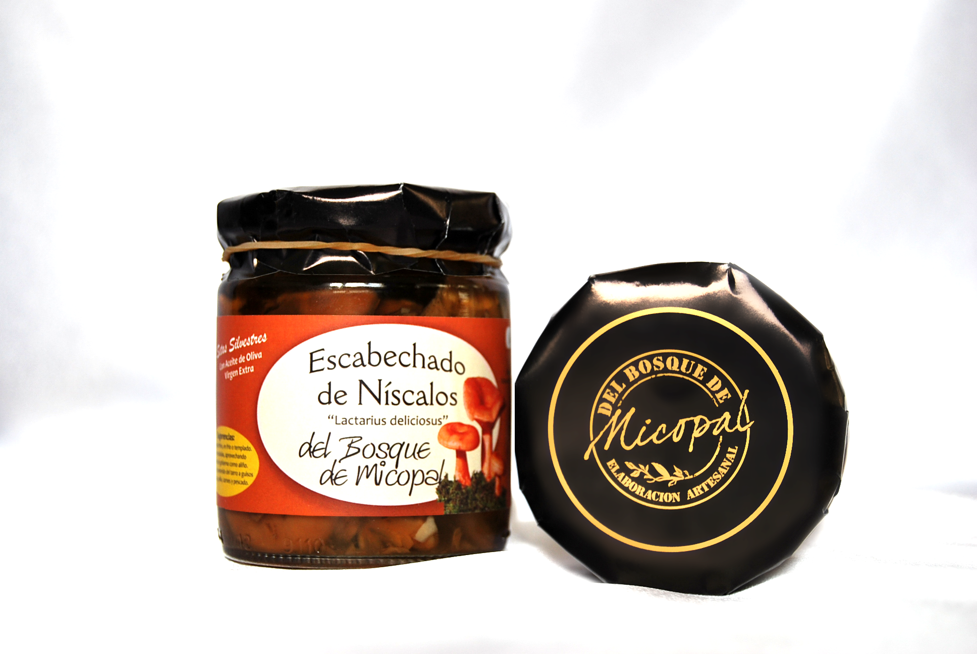 Este elaborado aplica un método tradicional de conservación el Escabechado, a un producto cada vez más demandado como son las setas silvestres. En este caso el Níscalo, una seta típica de zonas de pinar en la estación otoñal (es la “reina” de nuestros montes de pino). Se puede utilizar consumiéndolo como aperitivo a temperatura ambiente o calentándolo ligeramente para consumir templado.